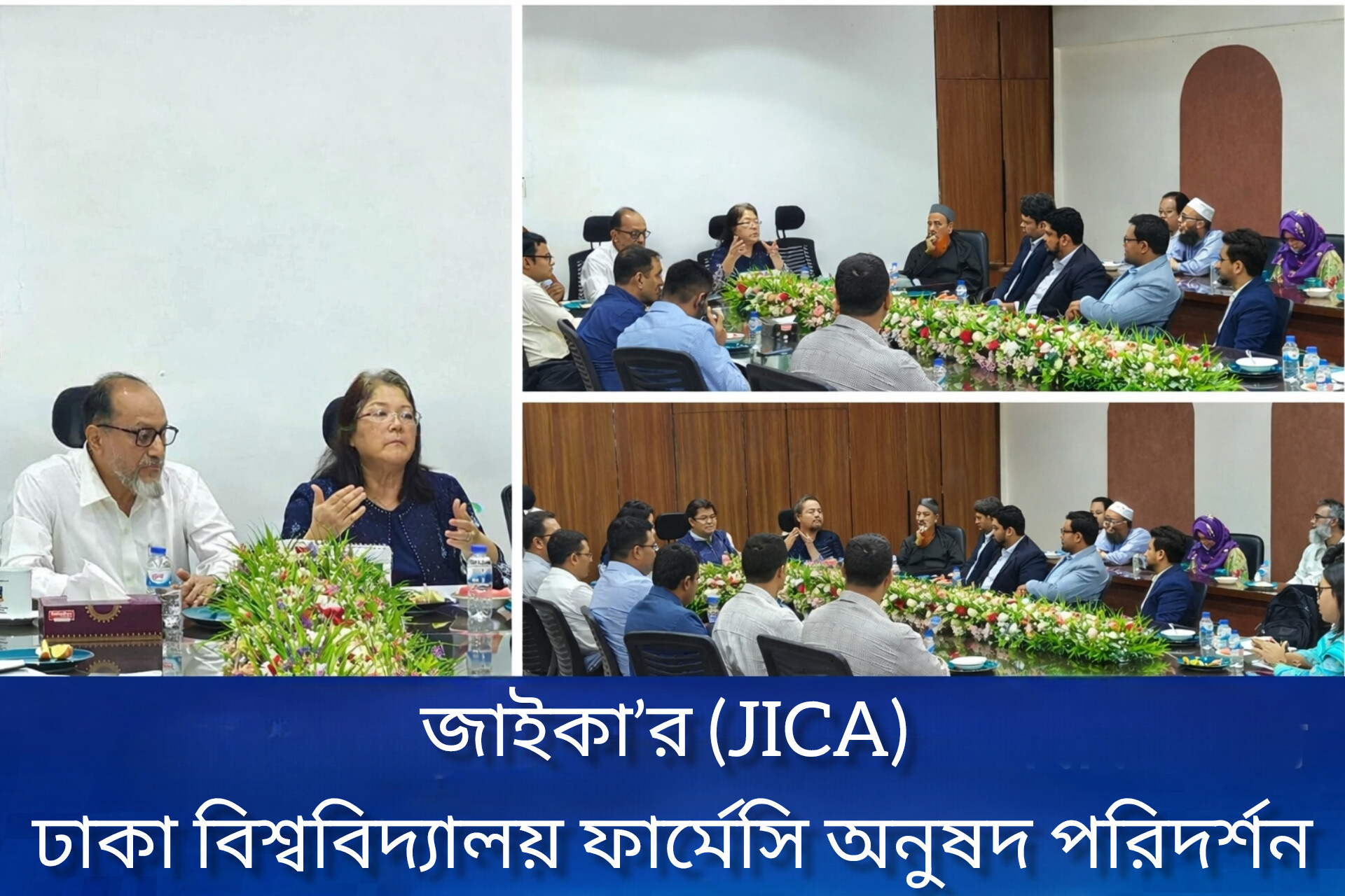 Japan International Cooperation Agency (জাইকা) দ্বিতীয়বারের মতো University of Dhaka-এর ফার্মেসি অনুষদ পরিদর্শন করেছে। এ সময় ফার্মেসি অনুষদের ডিন অধ্যাপক Selim Reza-এর সভাপতিত্বে বিশ্ববিদ্যালয়ের অন্যান্য অধ্যাপকগণ উপস্থিত ছিলেন।