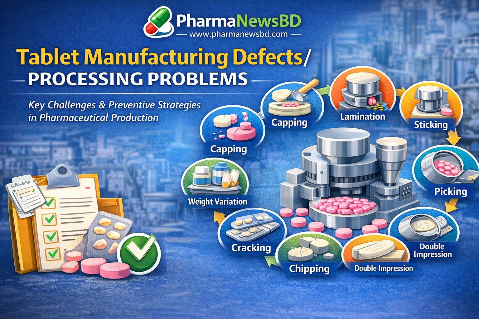 Dhaka, Bangladesh – February 2026 — Tablet manufacturing remains one of the most widely used dosage forms in the pharmaceutical industry. However, despite technological advancement in rotary compression machines and automated systems, tablet defects and processing problems continue to challenge manufacturers worldwide.